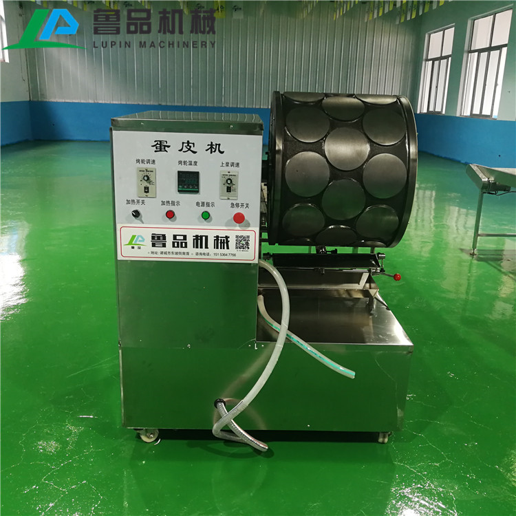 诸城市鲁品机械为大家介绍蛋皮机怎么使用,蛋皮机可以生产方形、圆形或椭圆形的蛋皮。根据用户不同的供电条件,可选择380伏或220伏电源。根据生产能力,可以选择不同类型的蛋皮机。一对一服务和售后技术指导非常贴心。该设备生产的蛋皮可在0.3毫米至1.2毫米之间调节。自动上浆、变频调速、数显控制器控制准确可控。只需手动调整蛋膏,设备自动运行。直接生产成品,无次品,自带出料冷却系统,烤盘一体成型,耐腐蚀耐高温,产量高达每小时30公斤,大大降低了人工成本,完全摆脱高温环境,外观紧凑,设计合理