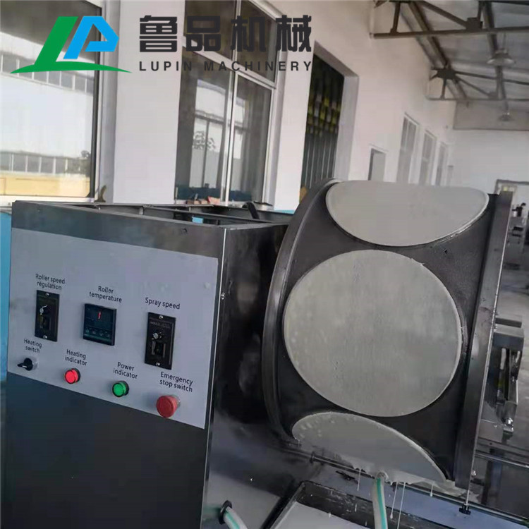 面浆直接产出成品,生产效率可观,每小时可达1000-3500张,适用于食品厂、饭店、快餐店、面饼批发商等。 该设备能自动完成面皮的送料、成型、熟制、输出、降温等工序,可以与下馅机,油炸机,速冻机,包装机等组成全自动熟食生产线。适用于面制品、烤鸭饼、春卷皮、咖喱皮、蛋饺皮、荷叶饼的成型。面皮大小与形状可根据客户定制。
