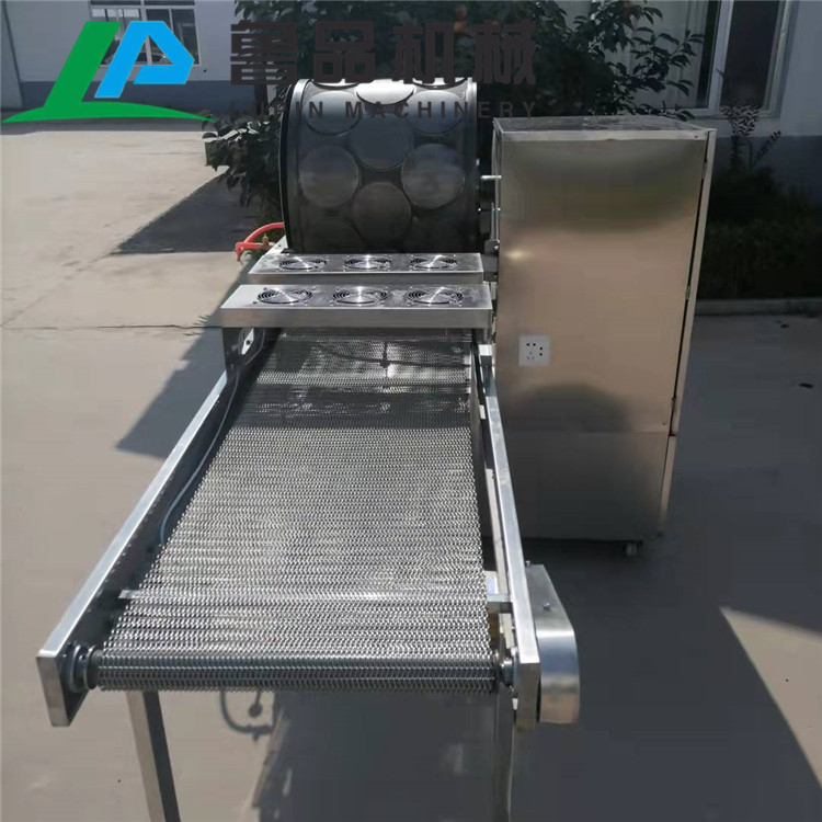 小卷饼面饼机设备操作简略,自动化程度高,两相、三相电源均可。用处:本生产线可制造厚度为0.3-3毫米的春卷皮、咖喱角皮、蛋皮与法国薄饼,并可制造其它片状食物,适合于食物厂、饭馆、快餐店等。 全采用不SUS304不锈钢浆桶、浆泵、上浆装置、离合器。变频调速、减速电机、低运转、静态醒面,对所加工的浆料反复揉搓,达到粘稠状、均匀化、不发热、不粘连、不破坏面筋。面浆时间可以**设定,进入醒发,熟化过程,操作简单,安全,易懂。